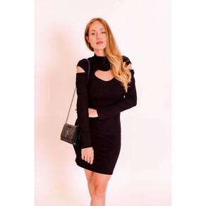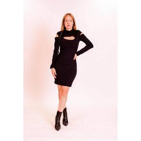 Vestido Mangas Longas Malha Canelada Diva, modelagem justa e gola alta com decote vazado na altura do colo. Detalhes na manga na altura do ombro, dando a impressão de manga dupla. Possui bojo. O vestido de manga comprida é ideal para compor looks mais diferentes, pois é uma peça elegante que proporciona estilo e personalidade à mulher. Código do Produto: 10227003 Marca: Khalli