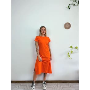 VESTIDO MIDI CAMISETA COM FENDA é o básico diferenciado que você estava procurando. Com material liso, o vestido tem elasticidade na medida certa e aspecto macio sem fechamento. Com detalhe em fenda, a peça é feita de algodão, tem material leve e sem compressão.