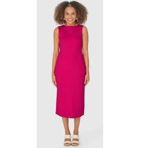 Vestido midi trabalhado acinturado com fenda atrás Malwee - G - Preto