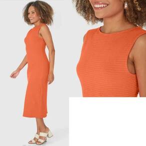 Vestido midi trabalhado acinturado com fenda atrás Malwee - G - Pink