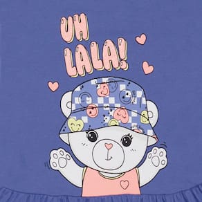 Sua filha vai ficar uma fofura com esse Vestidinho Pulla Bulla, confeccionado em Meia malha na cor Mirtilo com uma estampa super fofa de ursinha com detalhes em glitter, um Look perfeito para qualquer hora, cheio de chame e conforto. Uma peça indispensável no guarda-roupas da sua filha.\n