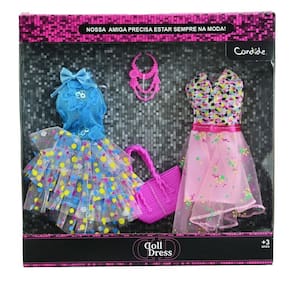 A linha Doll Dress apresenta um universo de cores e glamour São roupas estilosas e que vão deixar suas bonecas mais lindas e estilosas. Esse kit é composto por duas roupas e lindos acessórios. São 6 sortimentos diferentes para conhecer. A brincadeira vai ficar muito mais fashion e divertida Homologação Inmetro: 6792/2021-BRI-20 Ean: 7897500526160