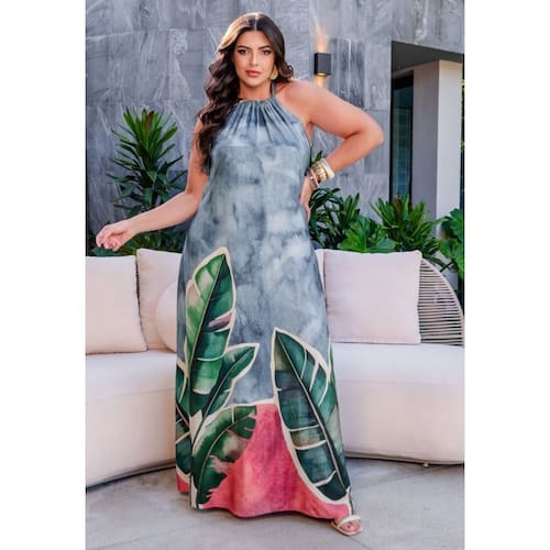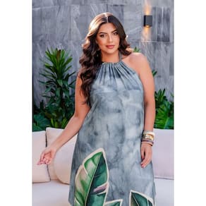 Vestido Plus Size Longo Estampa Barrada com Amarração no Ombro – Conforto, Estilo e Sofisticação O vestido plus size longo estampa barrada é a escolha perfeita para mulheres que buscam um look moderno, elegante e ao mesmo tempo confortável. Confeccionado em 100% viscose com forro em poliéster, a peça garante leveza, caimento impecável e frescor para os dias mais quentes. Seu design conta com modelagem solta e alongada, proporcionando liberdade de movimento e valorizando todos os tipos de corpo. O detalhe de amarração no ombro traz charme e versatilidade, permitindo ajuste prático e confortável. A estampa exclusiva em barrado com folhas tropicais deixa o visual sofisticado e atual, tornando o vestido ideal para diversas ocasiões: desde um passeio casual até um evento elegante ao ar livre. Seja para um look de verão, férias ou ocasiões especiais, esse vestido é a peça-chave que une estilo, modernidade e moda plus size.