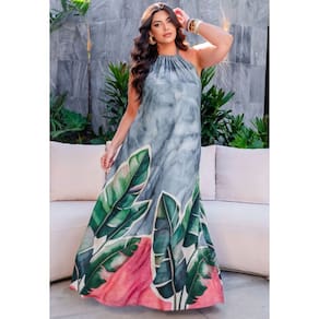 Especificações do Produto Nome do Produto: Vestido Plus Size Longo Estampa Barrada com Amarração no OmbroModelagem: Longa, ampla e fluidaDetalhes: Estampa barrada tropical | Amarração no ombro | Forro internoDecote: Ajustável com franzidoComprimento: LongoTecido: Viscose leve e frescaComposição: