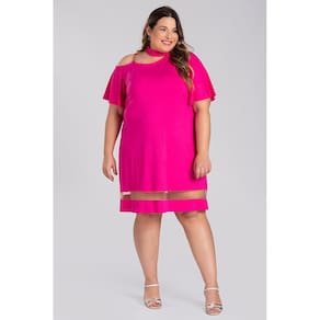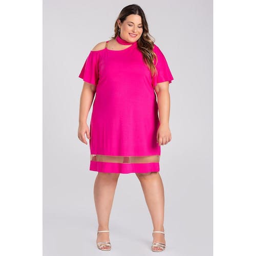 Vestido em malha viscose, com detalhe no decote, com corrente de metal no ombro e barra em tule formando lindos detalhes na peça. Malha com elastano proporcionado mais conforto e ajustando ao corpo. Modelo ideal para todas as ocasiões.