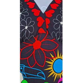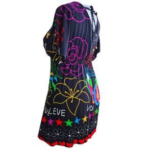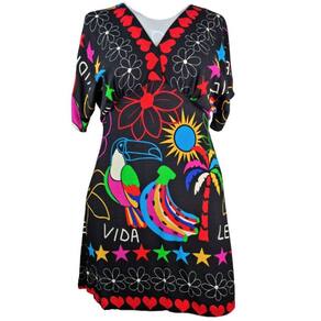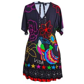 Vestido Preto Curto Virtude Estampa 100% Viscose.