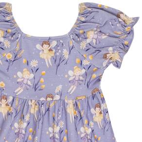 Fofura e conforto para o guarda-roupa das pequenas! Aposte neste vestido confeccionado em cotton leve na cor digital lavanda, com estampa de fadinha em toda peça, decote arredondado e mangas com elástico para maior conforto e delicadeza ao vestir. Ideal para um passeio tranquilo com a vovó.