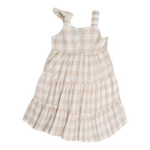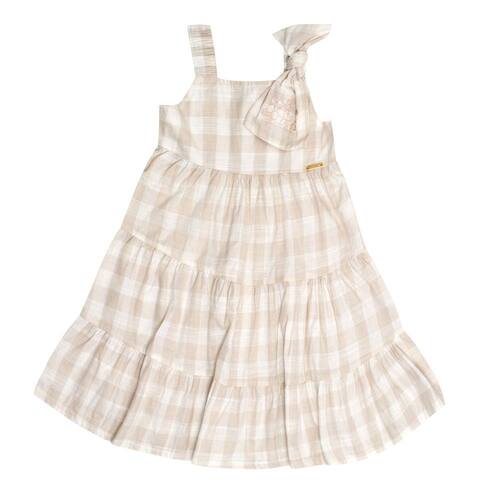 Vestidinho fashionista e moderno ideal para sua pequena fashionista aproveitar ocasiões especiais. Confeccionado em tecido xadrez fio tinto na cor off white no modelo alça com detalhe de laço grande ao lado esquerdo de quem veste. Uma fofura pra curtir com muita leveza e conforto.