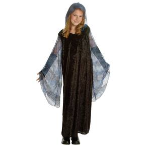 Fantasia da Venus Girl: Vestido preto com mangas de malha com glitter e capuz combinando anexado, luvas. Tamanho grande (12-14) feito de veludo de poliéster