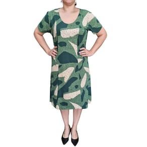 O Vestido Rodher Estampado Tons Verdes Plus Size combina conforto e estilo em uma peça versátil e elegante.