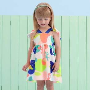 Vestido colorido em cores em neon, com alças na cor azul, com manguinha de babadinho, as costas um arraso de decote e amarração, estampado em fundo do mar.Perfeito!!Sua criança vai amar.96% Poliéster04% ElastanoForro: 100% PoliésterInformações: - Não Deixar de molho.- Lavar do avesso.- Não esfregar sobre o aplique e ou bordado.- Secar em varal.- Não passar ferro sobre o aplique e ou bordado.- Retirar os acessórios para lavar.OBS: ** Não Acompanha Casaco/jaqueta/bolero nas peças, somente uma amostra de como fica o look composto.