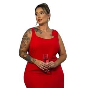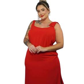 Vestido Social Midi em Viscolinho Vermelho Laço Alça Arruaça - Do GG ao G7