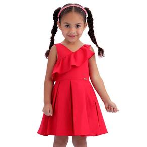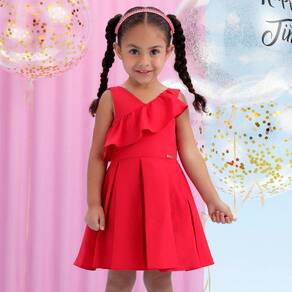 Vestido produzido na cor vermelha, ideal para usar nas festividades, alças largas, babadinho transpassado de um ombro até a altura abaixo das axilas, cinturado, saia com pregas largas, bem rodadinho, nas costas um espetáculo de recorte e um maravilhoso laço tamanho médio, forrado com failete.Já imagina sua criança nele.Apaixonante !100% PoliésterInformações: - Não Deixar de molho.- Lavar do avesso.- Não esfregar sobre o aplique e ou bordado.- Secar em varal.- Não passar ferro sobre o aplique e ou bordado.- Retirar os acessórios para lavar