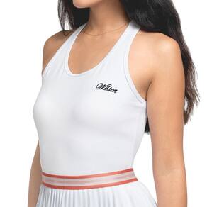 A marca Wilson está presente no coração e na história do esporte por quase um século, nenhuma outra empresa tem sido tão influente e intimamente envolvida na configuração do Tênis, Golfe, Beisebol e Futebol Americano como a Wilson. Como criadora de tecnologias inovadoras, ela produziu clássicos lendários, ganhou legitimidade em todo o mundo e é o verdadeiro ícone americano no mundo de equipamentos esportivos. Um exemplo de toda essa qualificação é a Vestido Wilson Tour Retro Branco, ele foi desenvolvido para possibilitar as tenistas o máximo estilo, leveza, bem-estar, segurança e liberdade de movimentos nas quadras ou em outros esportes.