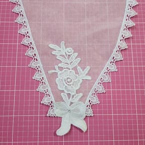 Dimensão: Aprox. 80 cm x 30 cm (podendo variar conforme a largura da renda)