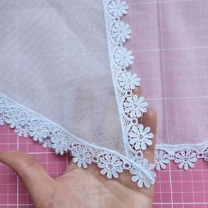 Dimensão: Aprox. 80 cm x 30 cm (podendo variar conforme a largura da renda)