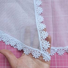 Dimensão: Aprox. 80 cm x 30 cm (podendo variar conforme a largura da renda)