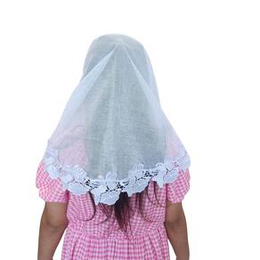 Confeccionado com Filó Verona (75% algodão e 25% poliéster) e Renda Guipir (100% poliéster).