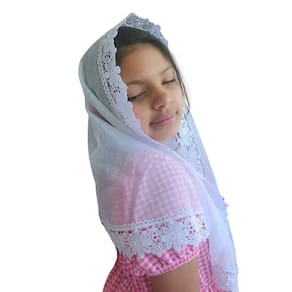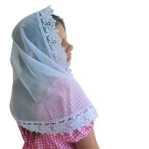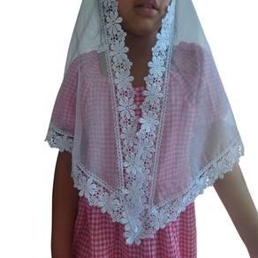 Confeccionado com Filó Verona (75% algodão e 25% poliéster) e Renda Guipir (100% poliéster).
