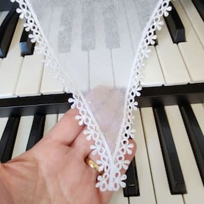 Dimensão: Aprox. 1,20 x 0,40 (podendo variar conforme a largura da renda)