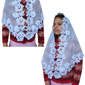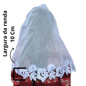 Confeccionado com Filó Verona (75% algodão e 25% poliéster) e Renda Guipir (100% poliéster).