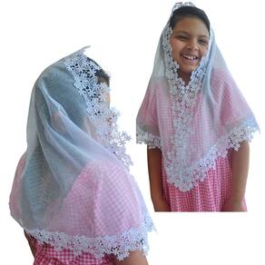 Confeccionado com Filó Verona (75% algodão e 25% poliéster) e Renda Guipir (100% poliéster).