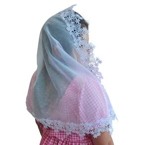 Confeccionado com Filó Verona (75% algodão e 25% poliéster) e Renda Guipir (100% poliéster).