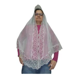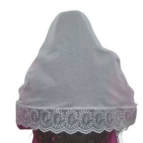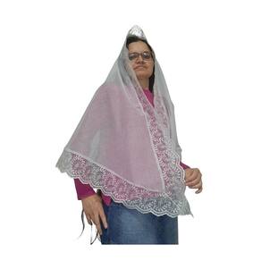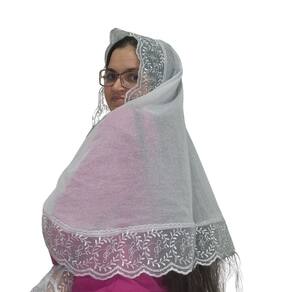 Véu CCB Organista Renda Larga Tule Redondo Retangular Adulto