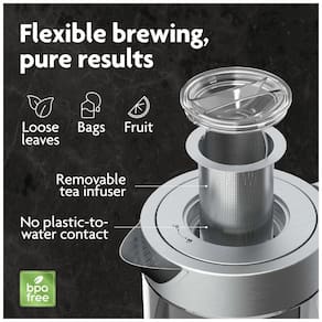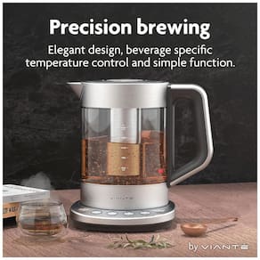 DIFERENTES TEMPERATURAS PARA DIFERENTES CHÁS Varietais de chá como Black, Green, White e Oolong requerem temperaturas de água exatas e tempos de preparo controlados para permitir que seus sabores e aromas únicos se desenvolvam durante a fermentação. A chaleira elétrica Viante com controle de temperatura vem com 4 configurações de temperatura predefinidas para chás brancos, verdes, Oolong e pretos, bem como café. INFUSOR DE CHÁ REMOVÍVEL PARA CHÁ SOLTO OU SACOS DE CHÁ Permite que você coloque saquinhos de chá ou folhas de chá soltas dentro para infundir a água. Remova a cesta do filtro assim que o tempo de preparação necessário para o tipo de chá que você está fazendo terminar, para evitar infusão excessiva. Fácil de remover e limpar. NÃO É APENAS CHÁ As preparações de French Press ou Pour Over Coffee também requerem água quente em uma temperatura diferente. Esta chaleira funciona como caldeira de água ou panela quente e elimina as suposições para que você possa desfrutar de uma xícara perfeita de sua bebida favorita. Use as várias configurações de temperatura da água para aquecer ou ferver a água para preparar macarrão, aveia, cacau, comida instantânea, fórmula infantil em pó e muito mais. MATERIAIS E RECURSOS DE ALTA ENDEREÇO Feito de vidro de borosilicato que é livre de BPA, bem como resistente ao calor e choque. Muito durável e fácil de limpar. Os botões possuem iluminação LED. Há um recurso de manter aquecido que mantém a temperatura da água após a preparação por 30 minutos. O resto do corpo é feito de aço inoxidável 304 de grau alimentício e a parte inferior da tampa é feita de plástico de alta qualidade SEM BPA que atende aos mais altos padrões de segurança alimentar