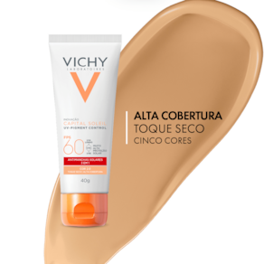 O Protetor Solar Vichy Capital Soleil FPS60 traz na fórmula propriedades únicas, que ajudam na redução das marcas solares, previnem a hiperpigmentação e uniformizam o tom da tez com sua alta cobertura.