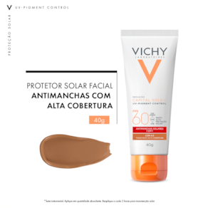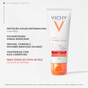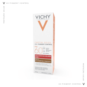 O Protetor Solar Vichy Capital Soleil FPS60 traz na fórmula propriedades únicas, que ajudam na redução das marcas solares, previnem a hiperpigmentação e uniformizam o tom da tez com sua alta cobertura.