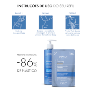 Aplicar 8 pumps no cabelo úmido, da raiz às pontas, massagear gentilmente o couro cabeludo, deixar agir por 3 minutos e enxaguar abundantemente. Para melhores resultados, use o protocolo Dercos de 2 passos. No passo 1, utilize o Sensi-Scalp Creme de Limpeza Calmante e no passo 2, use o Sensi-Scalp Sérum Calmante.