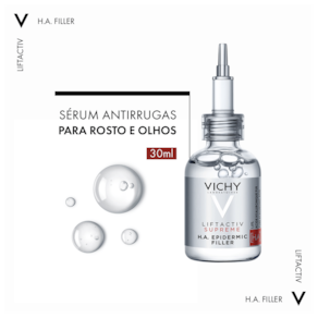 Sérum anti-idade para todos os tipos de pele. Vichy Liftactiv Supreme H.A. Epidermic Filler traz dupla ação para combater rugas e a perda de firmeza no rosto e no contorno dos olhos.