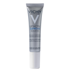 Com textura suave e de rápida absorção, Vichy Liftactiv Supreme desempenha um tratamento anti-idade completo para os olhos.