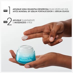 Com o Gel Hidratante Facial Vichy Minéral 89 Sorbet Mat Hydratation 48h, você terá uma pele com aparência saudável, livre de oleosidade e com uma sensação refrescante e aveludada o dia todo. Experimente!