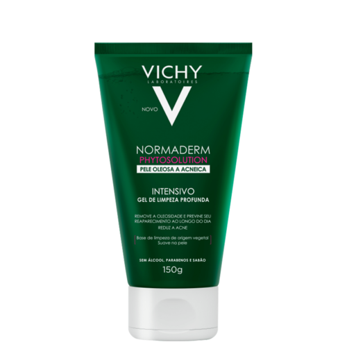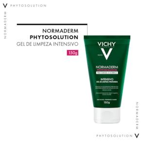 O Gel de Limpeza Profunda Vichy Normaderm Phytosolution Intensivo apresenta fórmula que reúne 4 benefícios para pele oleosa e acneica: controla a oleosidade sem ressecar, reduz a acne, limpa os poros profundamente e preserva a pele.