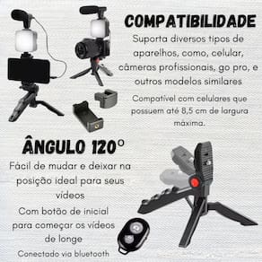 Compatibilidade: celulares, câmeras profissionais, gopros, e dispositivos similares.
