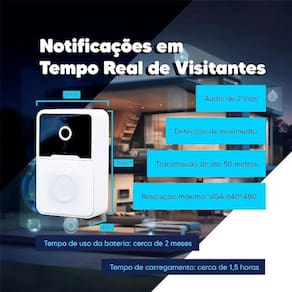 MONITORAMENTO EM TEMPO REAL: Veja em alta resolução quem está na sua porta diretamente no smartphone ou tablet, garantindo segurança e controle em qualquer lugar VISÃO NOTURNA CLARA: Equipado com LEDs infravermelhos, oferece imagens nítidas mesmo no escuro, assegurando proteção 24/7 para o seu lar DETECÇÃO DE MOVIMENTO AVANÇADA: Receba notificações instantâneas sempre que houver movimento, permitindo uma resposta rápida e prevenção de incidentes ÁUDIO BIDIRECIONAL DE ALTA QUALIDADE: Converse com seus visitantes em tempo real, ideal para instruções de entrega ou comunicação direta com familiares e amigos ARMAZENAMENTO EM NUVEM SEGURO: Proteja gravações e fotos com backup automático na nuvem, garantindo acesso fácil e segurança total INSTALAÇÃO RÁPIDA E CONECTIVIDADE WI-FI: Instale facilmente e conecte-se à sua rede Wi-Fi em minutos, sem necessidade de ferramentas adicionais