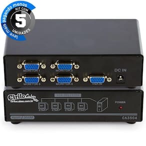 Vídeo Splitter 1x4 - Distribuidor De Sinal Vga - Kit Com 5 O Splitter VGA 1 x 4 é ideal para envio do mesmo sinal VGA simultaneamente para quatro aparelhos VGAs separados. Indicado para ampliar e espelhar para monitores, projetores e outros equipamentos com saída compatível. Tela expandida para vários monitores sem perder o sinal ou qualidade da imagem. Resolução até 19201440. Ideal para ambientes educacionais, salas de reunião e treinamento, monitoramento de sistema de segurança. Tenha suas informações de vídeo replicadas para diversos monitores com esse Splitter VGA da Cirilo Cabos. Como conectar: 1º. Conecte o seu aparelho VGA no Splitter VGA IN . 2º. Ligue os aparelhos que receberão a imagem VGA Out1 e Out2 . 3º. Conecte a fonte de energia no aparelho e na tomada de energia. Advertências: Para evitar choque elétrico, não abra o gabinete. Não exponha o produto em altas temperaturas, umidade elevada, ou luz solar direta. Antes de limpar, desligue o equipamento. Distância máxima recomendada de 30m. Conteúdo da embalagem: 01 Splitter VGA - 1 Entrada 4 Saídas 01 Fonte de energia Bivolt 01 Manual Atenção: cabos não inclusos no pacote do produto. Garantia de 3 meses.