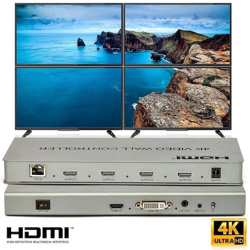 Vídeo wall 2x2 hdmi - 4k controlador - cirilo cabos a cirilo cabos traz a forma mais rápida e descomplicada de se ter um video wall completo para a sua festa, evento, games ou mesmo sala de aula: video wall controller 2x2 4k da cirilo cabos. Com ele é possível criar uma parede monitores ou tvs e distribuir um pedaço da imagem em cada um dos blocos de vídeo, monitores, tv lcd/plasma/led ou projetores. Sua operação é extremamente fácil, não só por ser plug & play e não necessitar de nenhum software a parte, mas por conta da sua estrutura de instruções visuais: basta olhar e usar. O video wall 2x2 da cirilo cabos é diferente dos outros, ele possui duas entradas distintas: hdmi e dvi e 4 saídas hdmi e mais uma saída de áudio de 3. 5mm p2 . As configurações para o tipo de wall desejado: 2x2, 1x2. O modo 2x2 é o mais utilizado para eventos, displays em lojas ou salas de aula. Permite que você através de uma única fonte pc/notebook crie uma parede com até 4 displays monitores, bloco de vídeo, tv lcd/plasma/led ou projetores com muita facilidade. Pra você que curte games em telas maiores, o modo 1x2 é ideal porque coloca as telas em linha aumentando a emoção e o campo de visão em jogos. O produto ainda tem saída para caixas externas com conector p2. Você pode ligar uma mesa de som e distribuir o áudio por todo o ambiente envolvendo o público presente, ou simplesmente colocar um fone de ouvido. O video wall controller da cirilo cabos ainda conta com uma entrada rs232 pra que você entre com comando para configurar cada tela individualmente. Empresas que trabalham com gerenciamento de crises ou gerenciamento de tráfego vão configurar suas telas com mais facilidade com o video wall controller da cirilo cabos. Especificações