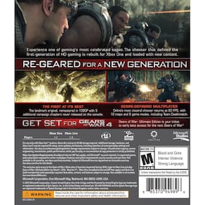 Gears of War: Ultimate Edition – Xbox One - Inclui jogo completo do Gears of War autêntico remasterizado em 1080p. - Jogue cinco capítulos de campanha nunca lançados no console. - Experimente multiplayer competitivo em 60FPS com 19 mapas e seis modos de jogo.