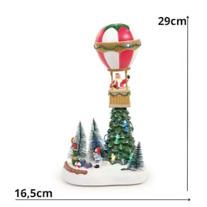 O cenário Balão com papai Noel foi pensando nas crianças que acreditam no Papai Noel e na magia do Natal, com suas cores alegres com as luzes natalinas, com o som natalinos. Está incrível decoração de Natal vai ficar ótima na sua comemoração natalina.