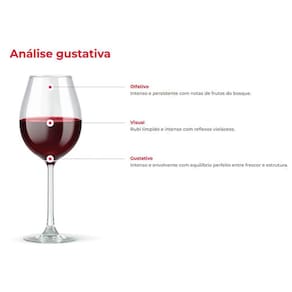 Paladar: Na boca é farto, com taninos macios e frutos vermelhos maduros, estendendo-se pelo palato marcado por um tom ligeiramente salgado. Vibrante!