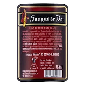 Com mais de 1.100 famílias associadas, 55 milhões de quilos de uvas por ano (42 milhões de litros de vinhos, sucos e derivados) e uma estocagem de 70 milhões de litros em uma área construída que chega a 110.000 m2, a Cooperativa Vinícola Aurora é a maior do Brasil. Toda sua produção possui a orientação de técnicos da vitivinicultura, que acompanham permanentemente todo o processo de fabricação, desde o plantio das mudas das videiras até a qualidade final dos produtos. DESCRIÇÃO DO PRODUTO O Aurora Sangue de Boi Vinho Tinto Suave é elaborado com uvas híbridas americanas, têm dulçor equilibrado com os aspectos frutados, corpo leve e fácil de beber. Uma das marcas mais consagradas do varejo brasileiro com forte apelo popular, os Vinhos Sangue de Boi estão há mais de 50 anos no mercado, e são associados a diversas situações de consumo do brasileiro, desde churrascos e pizzas, até no preparo de receitas regionais, como vinho quente e quentão, molhos, ragús e de sobremesas como o sagú. O Aurora Sangue de Boi Vinho Tinto Suave é o exemplar perfeito para o dia a dia: a marca que popularizou o vinho no Brasil. INFORMAÇÕES DO PRODUTO ANÁLISE SENSORIAL