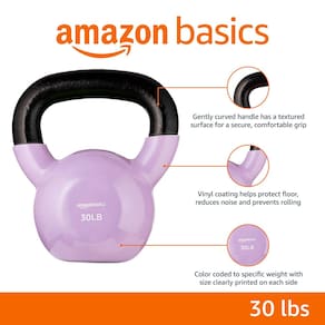 Kettlebell de vinil Amazon Basics, 30 libras, roxo claro