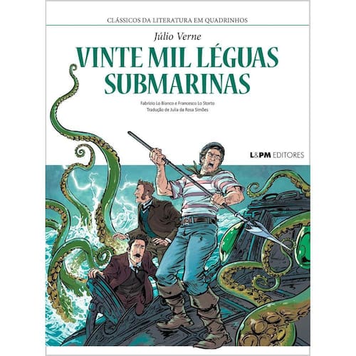Em 1871, quando Júlio Verne publicou o romance de aventura que inspiraria esta adaptação em quadrinhos, os mares e oceanos ainda eram em grande medida um mistério. Por uma simples razão: todas as embarcações navegavam na superfície das águas, e estas protegiam do olhar e da mão humana suas profundezas e seus segredos. Hoje, os leitores do século XXI encontrarão, nesta belíssima adaptação, toda a fulgurosa e potente imaginação de Júlio Verne: um grupo de homens, à caça do gigantesco animal que vem aterrorizando marinheiros em vários portos do mundo, trava conhecimento com uma nova máquina que permite a viagem sob as águas. Deparam-se com maravilhas submarinas até então inacessíveis à humanidade e intrigam-se com a figura tão estranha quanto fascinante do capitão Nemo um homem inteligente que, por alguma razão, parece ter abdicado do convívio com as sociedades humanas. Esta versão do clássico Vinte mil léguas submarinas mantém o suspense e o mistério do romance original, abordando, ainda, temáticas atuais, como as consequências, para o meio ambiente, da ambição desmedida dos seres humanos e a universalidade de conflitos políticos e da opressão entre os homens. Os Editores