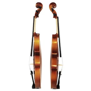 Especificações técnicas: - Tamanho: 42 - Material: Madeira laminada - Cor: Envelhecido - Acompanha estojo formato gota, arco estudante com crina natural, breu e correia para carregar nas costas.