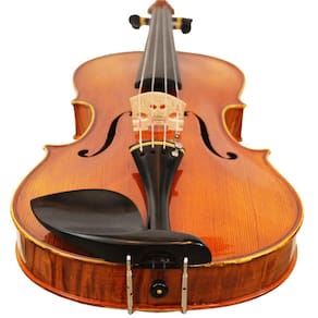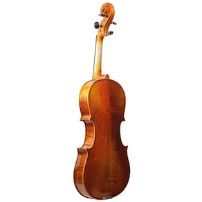 Viola de arco semi- feito em oficina, com madeiras maciças melhores selecionadas e montagens em ébano. Excelente custo-benefício para músicos exigentes. Todos os ajustes feitos pelo luthier na alma, pestana, cravelhas e cavalete, são todos refinados e permitem ao músico, ao receber o instrumento, já tocar com facilidade.