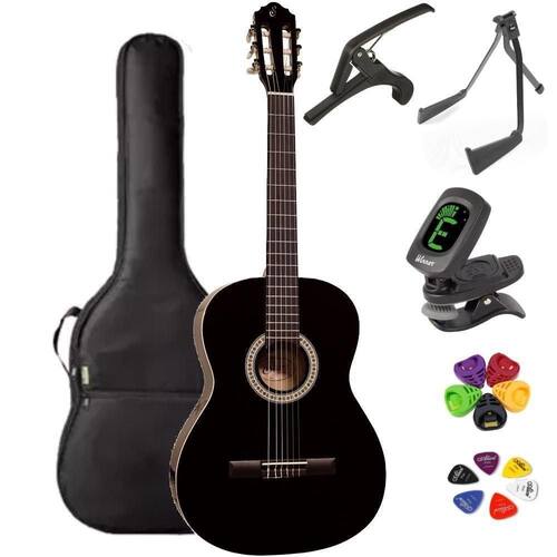 Violão Acústico Giannini Clássico Nylon N-14 BK + KIT6L Violão Acústico Giannini Clássico Nylon N-14 BK + KIT6LQuem dorme sonha, quem trabalha conquista IMPORTANTE: Acompanha: 1 Violão 1 Afinador 1 Capotraste 1 Suporte de chão 1 Capa acolchoada extra luxo 1 Porta Palheta 3 Palhetas A cor ou modelo dos acessórios podem variar de acordo com disponibilidade em estoque. ------------------------------------------------------------------------------------------ Marca: Giannini Modelo: N-14 bk Linha: Start Estilo: Tradicional Tamanho: Adulto ESPECIFICAÇÕES Tampo: Linden Lateral: Linden Fundo: Linden Escala: Maple Escurecido Cavalete: Maple Escurecido Braço: Chinese Solid Wood Tarraxas: Niqueladas 3 + 3 Pino Grosso Trastes: 19 em Alpaca Marcação: Bolinhas Brancas lateral Roseta: Mosaico Braço com Tensor Regulável Corpo sem Cutaway Cordas: Nylon Cor: Black bk Acabamento: Verniz Brilhante MEDIDAS Comprimento a :