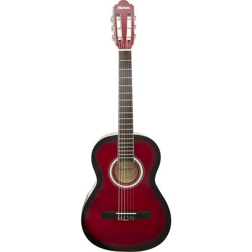 - Marca: Thomaz - Modelo: TCG-360 - Tipo: Clássico Acústico - Cordas: 6 Nylon - Tamanho: 36 polegadas - Cor: Vermelho - Orientação: Destro - Tampo: Linden - Laterais e Fundo: Linden - Cavalete e escala: Walnut - Tarraxas: Cromadas - Trastes: 18 - Acabamento: Linden - Braço: Com tensor - Filetes: entalhados em ABS - Medidas Aprox.: 8 x 35 x 91 cm - Peso Aprox.: 1,4 kg